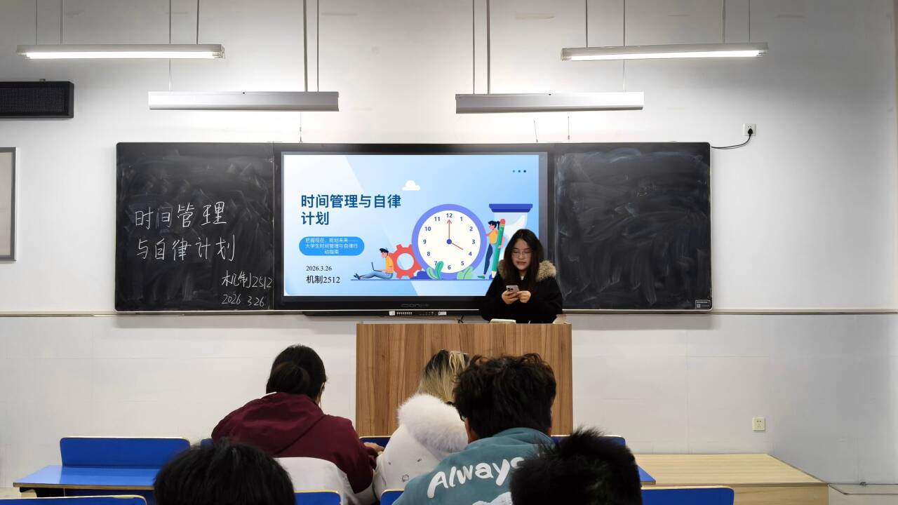 (通讯员 杨谨溪)为帮助学生树立科学的时间管理观念,养成自律笃行的良好习惯,3月26日,机械学院机制2512班班主任贾家乐老师组织开展以“时间管理与自律计划”主题自主课堂活动。