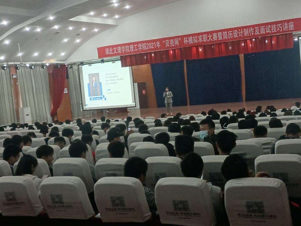 本次讲座主要面向18级本科和19级专科的准毕业生进行,特邀“贝壳网校园宣讲师”郑莉老师向大家讲解简历以及面试的实用技巧,主要讲了简历要具有美观性、真实性、针对性以及多样性;面试时要仪态端庄、逻辑清晰、语言准确。同时询问了在场同学有关于求职的疑惑,并对其疑惑作出合理解答。