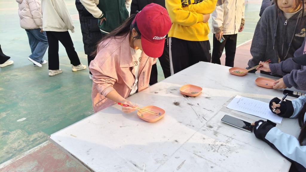 无敌风火轮中,各宿舍成员同步前行,考验团队节奏把控;心灵手巧环节,同学们在限定时间内用筷子夹取玻璃珠,锤炼专注力与耐心;神笔马良项目里,大家通过绳索协同操控毛笔书写“机械学院”,默契配合尽显凝聚力。