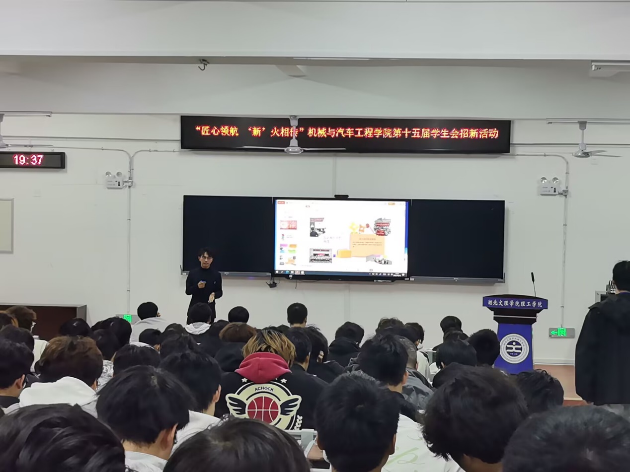 (通讯员 乐心蕾)于10月12日晚,机械与汽车工程学院于1J-105报告厅分三场开展学生会招新讲座,钟智慧、梁国庆、周玉洁三位主讲人围绕七大部门宣传,以“匠心+精神领航”为核心,借往届案例传递“精益求精、服务奉献”的匠心精神,为新生提供方向指引。