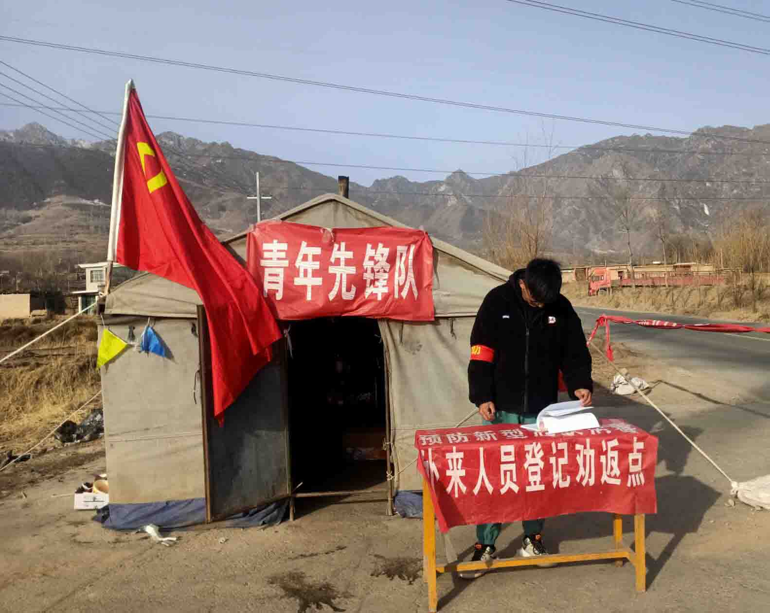 大家的主要任务是负责本村人员出入登记、非本村人员劝返等工作,工作的时候条件很艰苦,搭着帐篷在村口值班。大家按照排班安排,24小时轮流在帐篷值班。到了晚上帐篷里没有灯,凌晨三点四点的时候,帐篷里很冷,志愿者被冻醒了,可是大家依旧坚持值班,热情的工作,严密控制着外来人员进入我村的“关口”。这支大学生志愿者队伍在工作期间累计登记出入人员达529人次,劝返非本村人员达156人次,登记车辆达342辆之多。