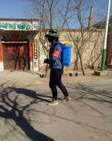 在疫情发生后,村里也积极采取了行动,村委会决定成立消毒队,对村子每周进行一次喷洒消毒。曹海源同学知道这个消息后,主动申请加入到张掖市乌江镇天乐村志愿者队伍当中,成为一名消毒员。