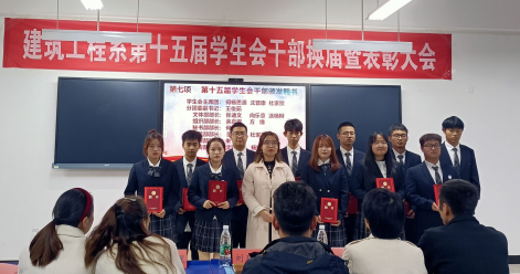(建工系 汪纪婷、陆康乐)青春奋斗新时代,奋进逐梦新征程。为了进一步优化我系学生干部队伍建设,增强学生干部的凝聚力和整体战斗力,促进学生工作的发展,更好地发挥学生干部密切联系学校和师生的桥梁纽带作用,为同学们提供锻炼自我、提升能力、展示才华的舞台。2023年11月9日,建筑工程系在1教207召开了第十五届学生会干部换届暨表彰大会,系副主任刘琦良、系党总支副书记付明星、系教学副主任张巧巧、系学生支部书记汪纪婷、系分团委书记覃璇、系辅导员路扩老师出席会议,建筑工程系第十四届学生会干部、第十五届全体学生会成员和2023级全体新生参加会议。