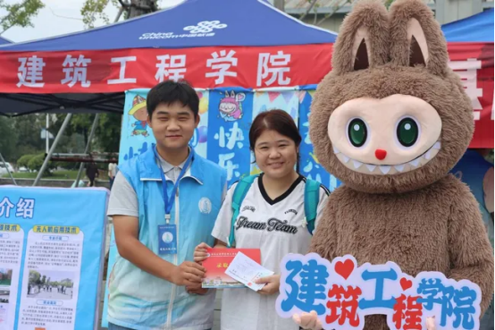 学生会各部门各司其职,宣传部实时记录迎新点滴,生活部协调物资保障,展现了学院严谨与温情并存的管理风貌。迎新现场充满专业特色与创意活力。学院设置“建筑文化打卡墙”,展示优秀竞赛作品;人偶“拉布布”穿梭人群,与新生合影互动,萌趣中传递校园温度。专升本辅导员针对性讲解培养方案,25级辅导员深入宿舍了解新生需求,鼓励新生规划学业目标。让新生从报到到入住,每个环节都有志愿者帮忙,让新生感受到‘家’的温暖!