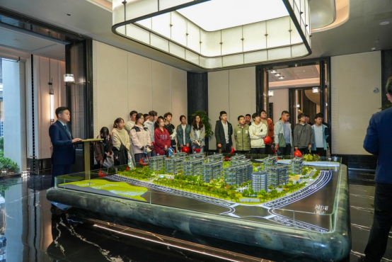 金楚智投・宸园是襄阳市第四代住宅示范工程,项目总工程师全程陪同讲解,介绍其在空间布局、生态融合等方面的创新,重点阐述智能建造技术在设计、施工、质控中的应用,指出该类住宅代表建筑业转型升级趋势。师生实地考察结构系统、外围护技术等关键节点,总工程师还解答了学生关于结构安全、垂直绿化等问题。