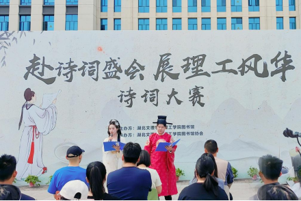 为迎接第29个世界读书日,带动全校师生享受诗词之美,激发同学们的读书热情,4月18日下午,由湖北文理学院理工学院图书馆主办,湖北文理学院理工学院图书馆协会承办的“赴诗词盛会·展理工风华”诗词大赛在图书馆广场举行。党委书记叶永涛、副校长耿帮才、校长助理朱雪林、图书馆副馆长莫菲菲出席活动。活动由教育学院汉语言专业梁艳敏老师指导,图书馆协会两位同学担任主持。