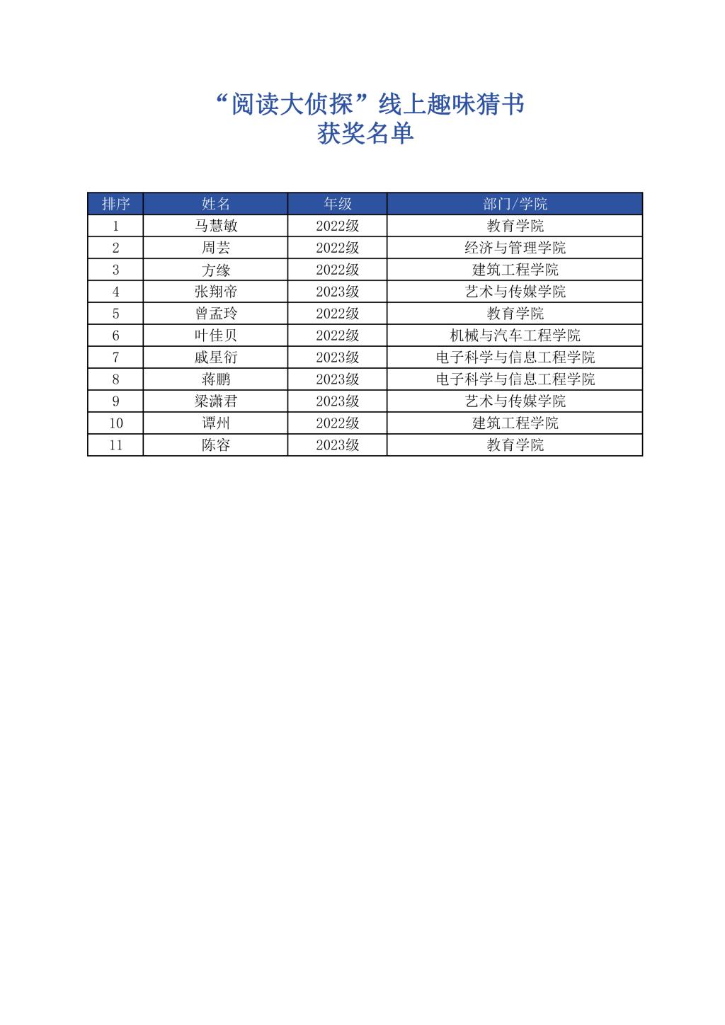 湖北文理学院理工学院 “阅读大侦探”线上趣味猜书名获奖名单