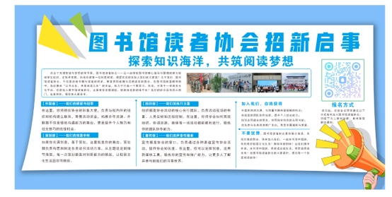 不要犹豫,图书馆读者协会是你展示自我、实现价值的舞台。快来加入我们,一起在书海中遨游,共创美好校园文化生活!期待你的到来!让我们携手并进,在书海中遨游,用阅读点亮生活,用智慧照亮未来!在图书馆读者协会的大家庭中,遇见每一个热爱阅读的你