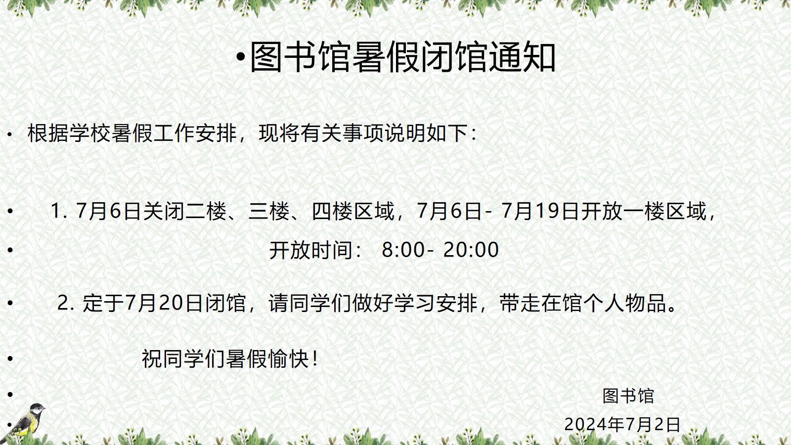 图书馆暑假闭馆通知