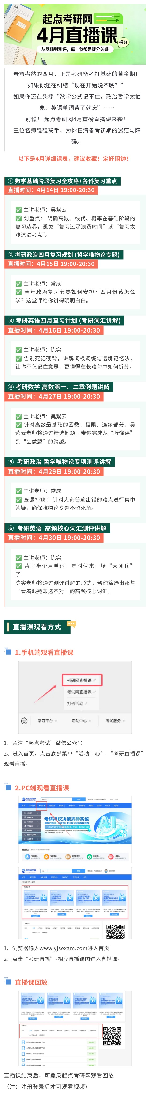 起点考研网4月课表|从基础到测评,每一节都是提分关键