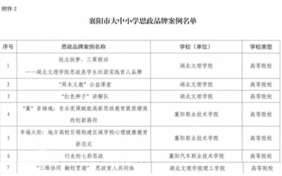 同时,马克思主义学院的《“三维协同・融创贯通”思政育人共同体》入选襄阳市大中小学思政品牌案例。该品牌建设于2022年10月启动,联合襄阳市第二十六中学开展实证研究,聚焦破解思政课分段割裂、重复低效、路径模糊等难题,构建“队伍共建、内容共研、课堂共创”一体化范式,创新学段衔接方案与沉浸式课堂,开发特色课程体系,打造师资发展共同体,形成可复制、可推广的一体化建设经验。