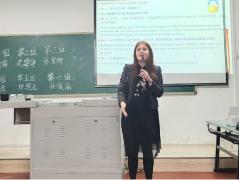 活动在以“东西文化中的交流差异”为主题的讲座中拉开帷幕。通过外教声情并茂的讲解,学生们对中外文化交流中的异同有了更深的认识。紧接着,学生们对讲座中所学的文化知识分小组进行讨论,并由每组推选出一名组长,结合人际交往这一话题进行自由辩论。辩论结束后,外教对学生们的表现给予点评。最后,全体学生轮流参加游戏“你说我猜”,与外教充分互动,整场活动在轻松欢乐的气氛中达到了高潮。