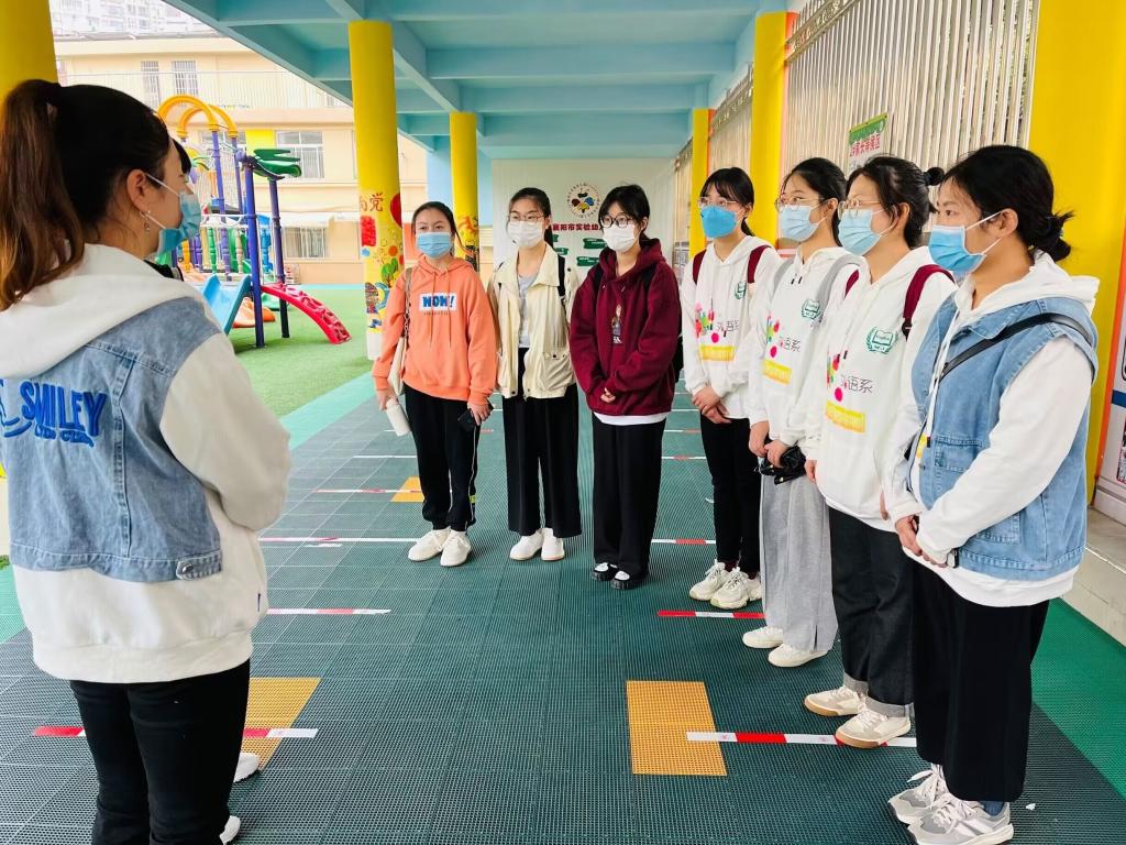 (外语系陈小文)基于“1+N”的学前教育人才培养模式的探索,为更好地践行产教融合的培养路径,10月24日上午,外语系学前教育专业多名大四准毕业生分别抵达襄阳市实验幼儿园等多个幼儿园进行毕业论文撰写中非常重要的环节——学术调研实践。据悉,2019级本科1911和1912班共计83人,其中有72人毕业论文需要实践性调研、观摩和访谈的基础数据收集。外语系立足人才培养的产出目标,积极对接各个幼儿园的教学园长,沟通论文研究方向、调研内容和模式,协助毕业生做好入园观摩调研的前期准备工作。