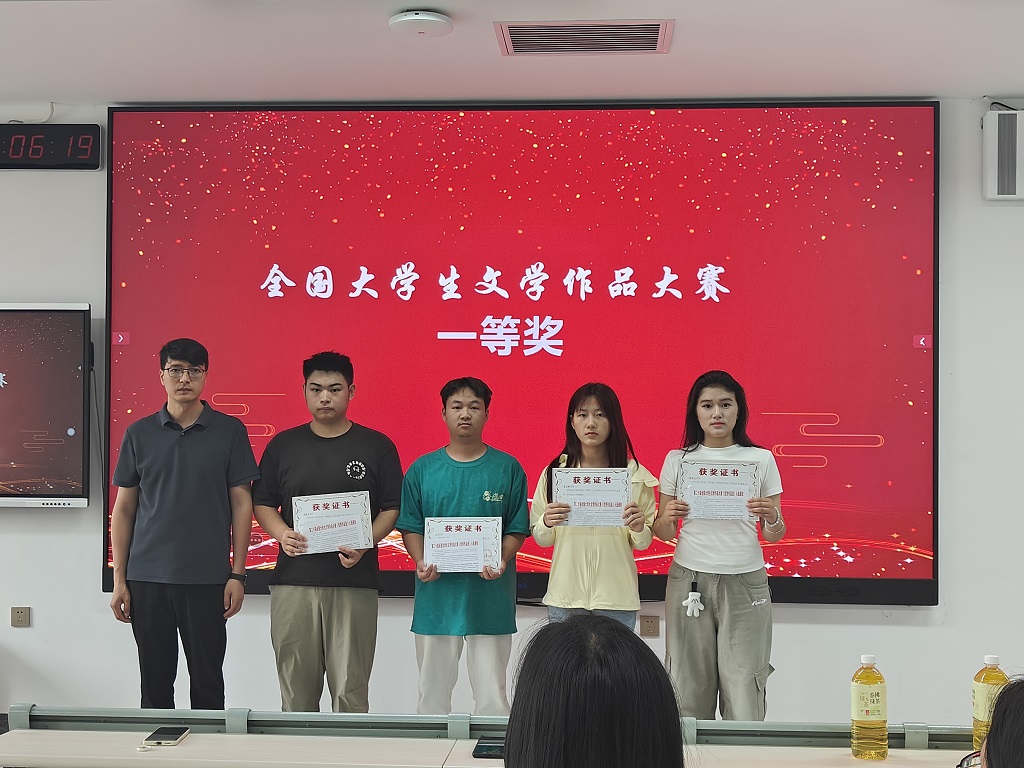 颁奖典礼上,王文琦及教师代表为获奖选手颁发获奖证书,鼓励获奖学生再接再厉,用心体悟大学期间的青春时光,用文字抒发对美好人生的热爱,用文学展现当代大学生昂扬向上的精神风貌。龚程对近期的重点文学竞赛工作进行了安排部署。
