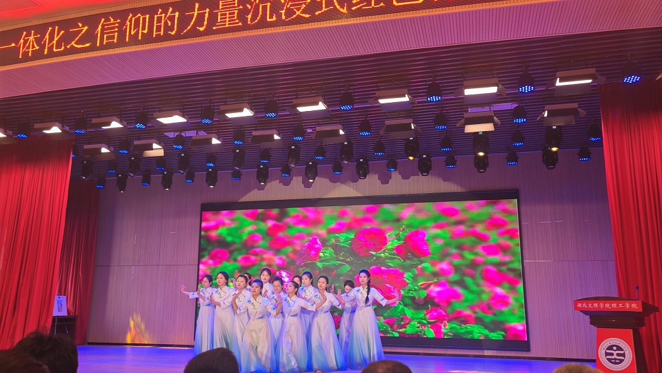 舞台上,学子们化身奔腾不息的汉江碧水,她们以灵动的舞姿,诗意再现江河从沧桑到清朗的蜕变历程。每一次旋转、每一次伸展,不仅是对“绿水青山就是金山银山”理念的生动诠释,更是学前教育专业舞蹈课堂成果的鲜活延伸。从理论到实践,从教室到舞台,这既是一次宝贵的艺术实践,更是教学相长、知行合一育人理念的完美印证。