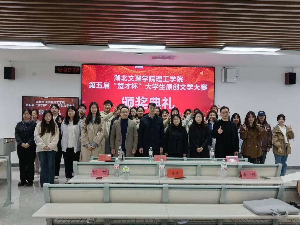 (教育学院 张硕坤 刘雨辰)11月12日中午,我校第五届“楚才杯”原创文学大赛颁奖典礼在东津校区第一教学楼313教室隆重举行。教育学院副院长王文琦、汉语言文学专业负责人黄一帆、小学教育专业负责人付华安、昭明文学社指导教师龚程、汉语言文学专业教师曹倩、刘婕及获奖作者、昭明文学社代表、学生代表等60余人参加了典礼。