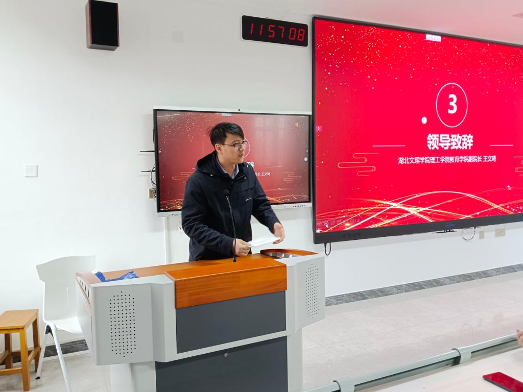 颁奖流程结束后,教育学院副院长王文琦上台致辞,王院长对获奖作者表示祝贺,对本次大赛的组织开展表达了高度肯定。他表示,“楚才杯”原创文学大赛已连续成功举办了五届,每届都有非汉语言文学专业的学生参赛并获奖,这离不开学校各级领导和老师的全力支持以及广大学子的踊跃参与,也离不开昭明文学社的精心组织。教育学院和学校将继续组织多种形式的校园特色活动,丰富同学们的校园文化生活,为广大学子搭建展示才华、锻炼本领、提升自我的舞台。