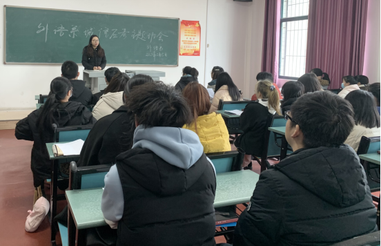 (外语系 金胜)本学期期末将至,为了确保学生在期末考试中严肃考风,遵守考纪,12月17日下午,外语系在四教205教室为各年级各班学生开展诚信应考主题教育班会。外语系党总支副书记骆小青参会。