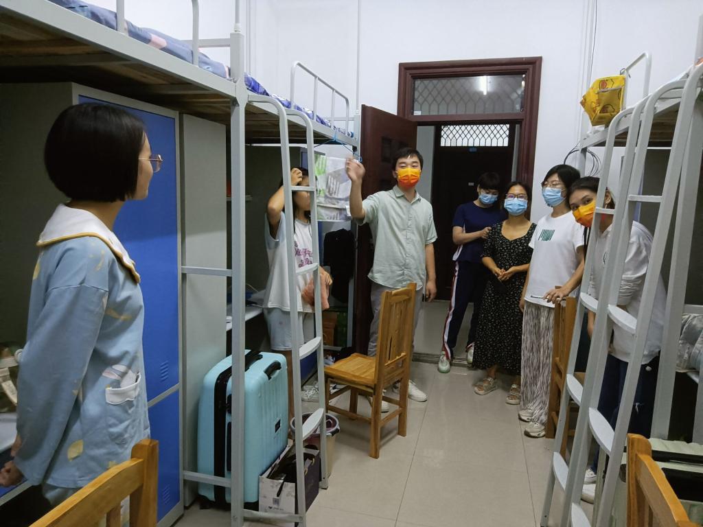 (外语系王凯)9月19日晚,外语系党政领导和新生辅导员深入学生公寓,走访2022级新生。