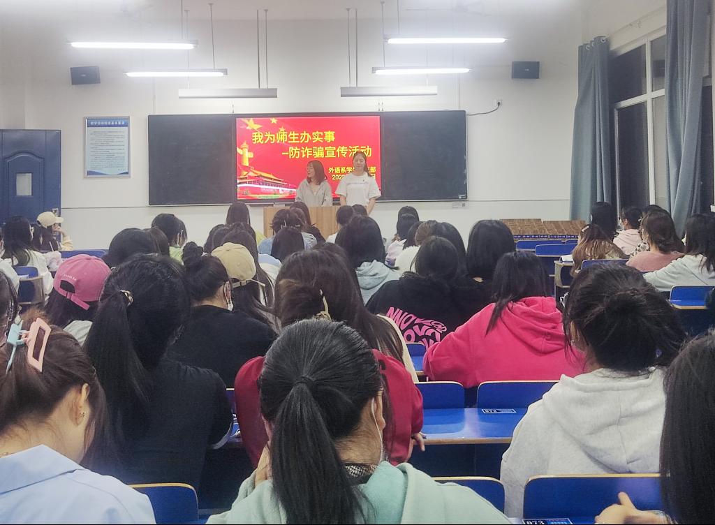 (外语系李兵冰 付毅红)为迎接2022级新生,并增强新生的防骗防范意识,2022年10月16日晚,外语系学生党员为新生开展了以“增强安全意识,防范诈骗陷阱”为主题的交流会。