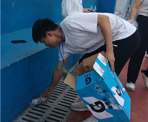 活动开始前,外语系学生支部张高芬根据活动人数以及卫生清洁区域进行了明确的分工。活动中,16名发展对象佩戴志愿者标牌以小组为单位分别对学校操场、篮球场、羽毛球场、排球场以及乒乓球场进行了全面细致的清洁打扫。秉持着全心全意为人民服务的宗旨,同学们相互配合、合理分工,使学校运动场所变得整齐有序、焕然一新。