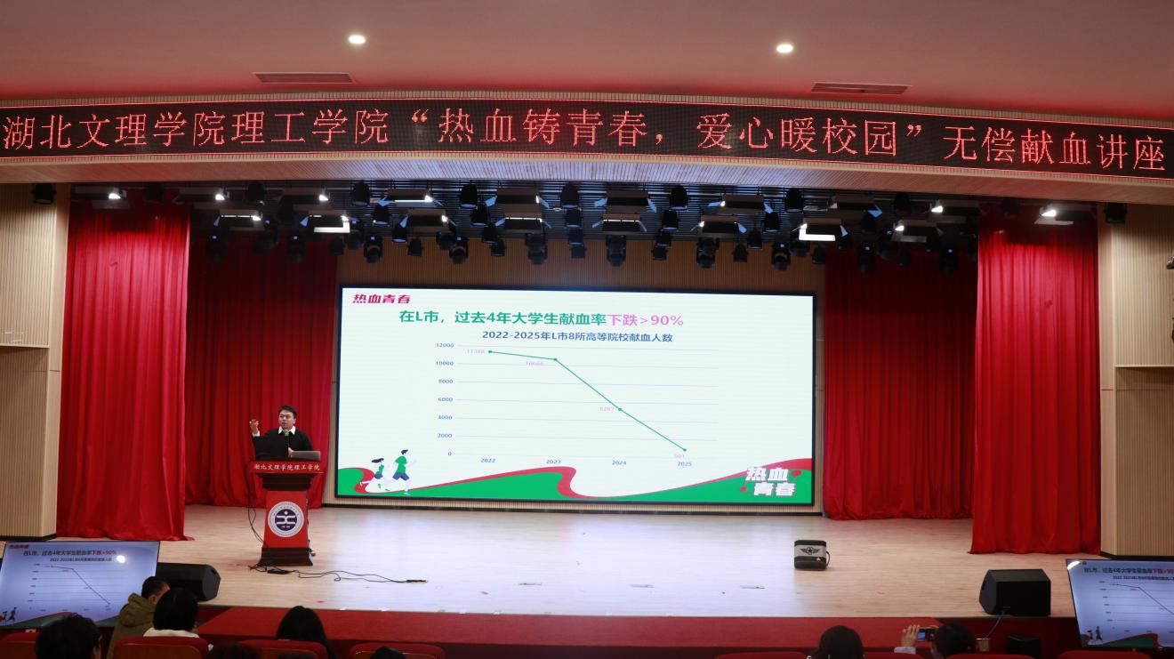 (通讯员 姚睿晨)为普及无偿献血知识,传递奉献爱心、关爱生命的正能量。12月15日晚,一场以“热血铸青春,爱心暖校园”为主题的无偿献血知识讲座在我校大学生活动中心三楼报告厅顺利开展。讲座特邀资深献血者席枫老师担任主讲,各二级学院学生干部代表和青年志愿者协会成员到场学习。