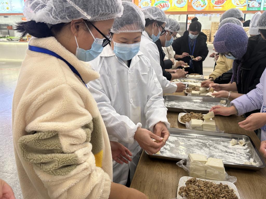 食堂工作人员提前准备好了面团、馅料和工具。同学们分组协作,从擀皮、放馅到捏合,各显身手。许多同学是第一次尝试包饺子,在互相学习和帮助下,很快掌握了技巧,盘中的饺子形态从生疏到精巧,汇聚了大家的热情与创意。