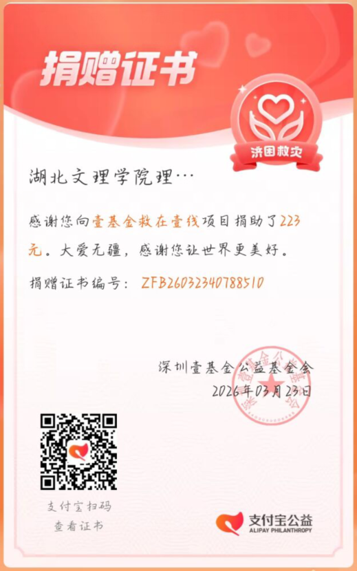 活动结束后,回收的全部废品在学校物业公司的协助下,统一运送至回收站变卖,所得223元以学校名义通过支付宝全额捐赠壹基金“救在壹线”项目,让废旧价值化作爱心暖流。