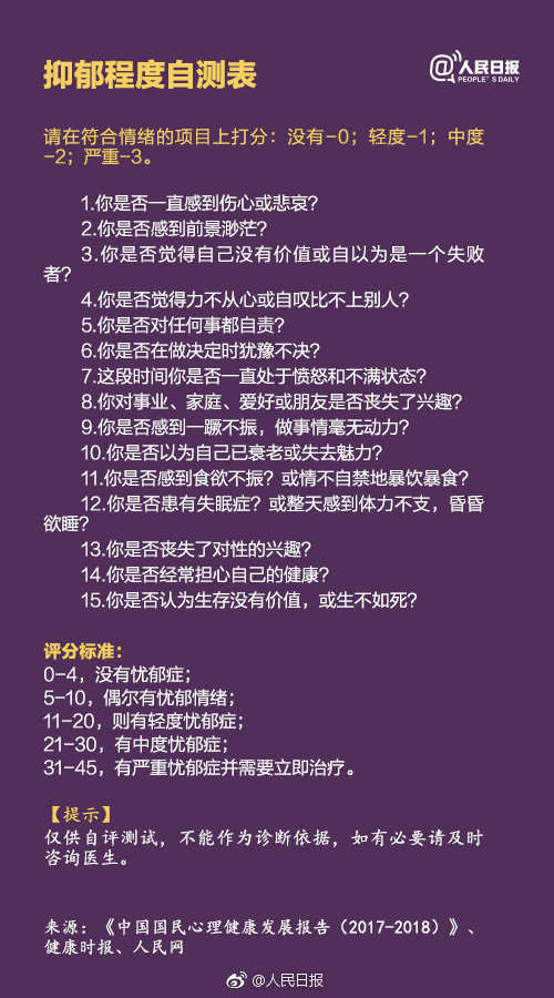 社会功能:如果已经无法像正常人一样生活、工作、学习,说明心理状态需要关注。
