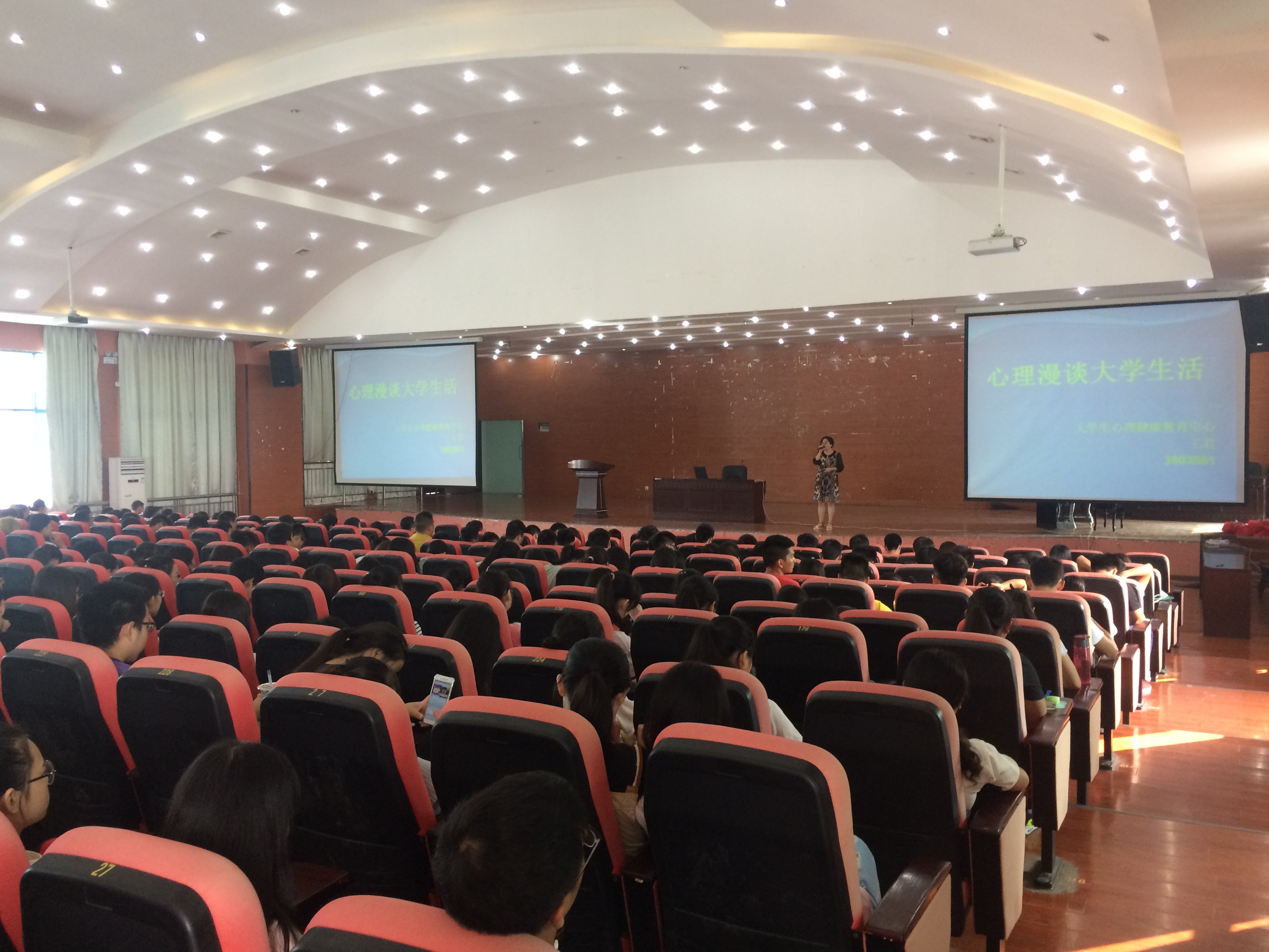 “心理漫谈大学生活” 大一新生适应性讲座2016年9月14日在活动中心三楼报告厅举行。本次讲座由大学生心理健康教育中心王君主任主讲。 讲座旨在帮助大学新生完成中学到大学的心理转变,更好地适应大学的学习、生活、人际交往、把握好就业。讲座过程中,王君主任深入浅出的分析了高中和大学在这两方面的差异,同时又分析了大学交际的微妙,以及如何理解异性关系。其中重点讲述了大学的学习与中学学习的不同。大学的学习重于自主学习,高中学习偏于填压式学习,我们进入大学后我们要学会自主把握好学习的内容、时间,把主要精力集中在自己感兴趣的专业上,同时以专业的不同角度广泛的学习其他专业的知识,不断地扩大自己的知识面,使自己在上完大学之后能够成为个知识渊博的人。在与异性交往方面,王主任先讲授了大学前中学时期老师的处理方式及背景,以及大学生在该年龄阶段的性心理状况。肯定了步入大学向往异性的正常性,同时指出了新生在学习、环境生活方面还不适应和熟悉,在异性交往方面缺乏经验的现状还不适合在异性身上花费太多的时间和精力。在就业方面,王主任认为这是一个沉重的话题,他认为我们应该关注社会的发展现状以及了解本专业那些知识和技能是社会所缺乏或必需的,以便及时调整学习内容或技能,使自己以后步入社会能迅速、充分的发挥自己的作用。 讲座结束以后,王主任与学生进行了亲切的互动,引发一阵阵热烈的掌声和笑声。