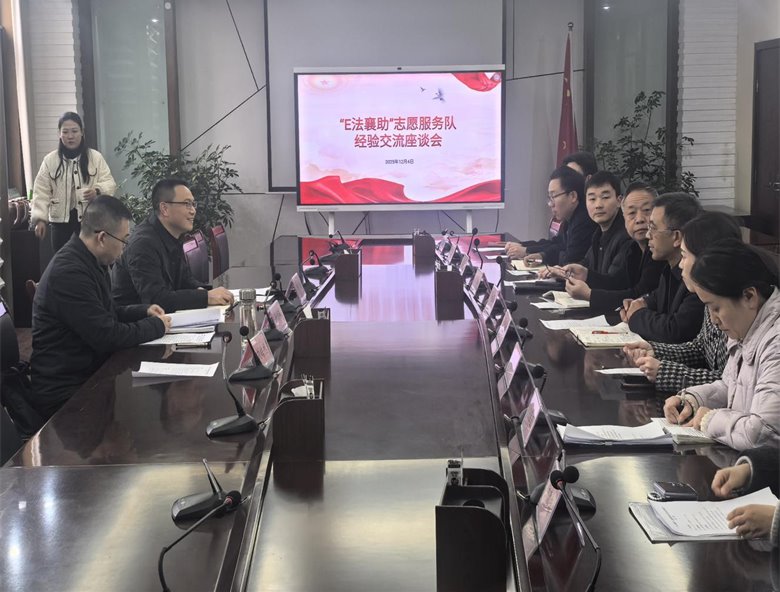 (经管学院 齐康)2025年12月4日是我国第十二个国家宪法日。为加强网络法治宣传教育,襄阳市委网信办在湖北文理学院隆中校区行政楼组织召开“E法襄助”志愿服务队经验交流座谈会。会议由市委网信办副主任胡松主持。湖北文理学院相关部门负责人,我校校长助理朱雪林、党群工作部副部长王凯、指导教师齐康及志愿服务队全体成员参加了本次活动。