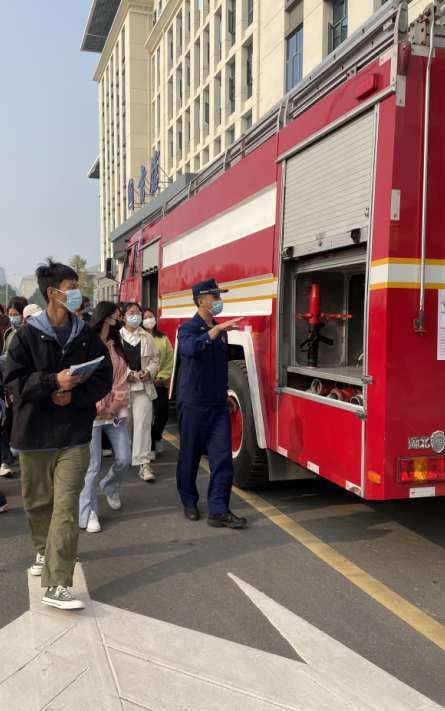 11月9日,第31个全国消防日,我系组织15名学生代表参加了防火灭灾活动。现场学习了消防知识、灭火器使用、火场逃生等,还参观了消防车。