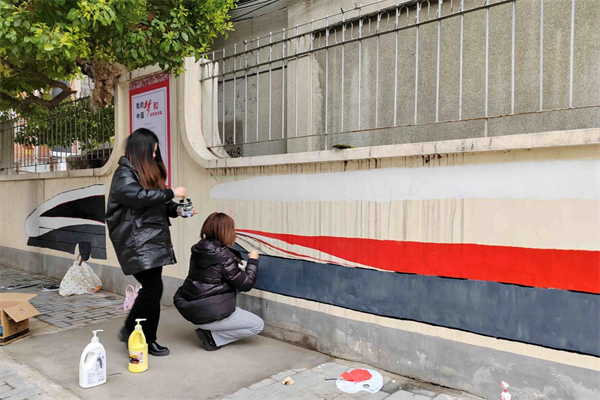 艺术与传媒系高老师说,前期她在参与社区志愿活动的过程中了解到,铁路社区部分小区家属院的围墙经过风吹日晒和雨水侵蚀,变得不太美观,所以就积极跟社区联系沟通,最终确定在辖区的铁院中路和黄鹤巷开展墙绘活动,以此来提升社区的颜值。