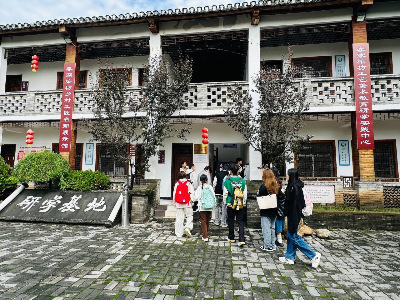 李家染坊村以其独特的传统印染工艺文化和优美的乡村风貌闻名。此次调研旨在将课堂理论与乡村建设实践紧密结合,让学生们亲身感受乡土文化的魅力,并运用专业知识思考乡村环境优化与艺术赋能的有效路径。