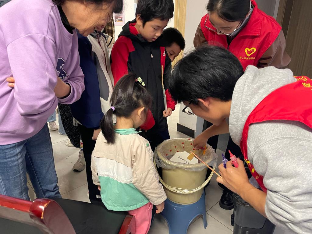 在党员志愿者的帮助下,居民们沉浸式参与创作。有的党员协助居民将襄阳古楼景致转化为扇面线条,有的引导用传统纹样呼应非遗内涵,更有党员结合书籍中的非遗记载,帮居民将文字灵感转化为视觉表达。指尖流转间,普通扇面蜕变为承载非遗记忆与地域特色的“活化石”,党员与居民的互动让非遗传承有了温度。活动尾声,小朋友们纷纷分享创作心得,党员们更借机补充讲解作品中蕴含的非遗知识点,让展示环节成为第二课堂。