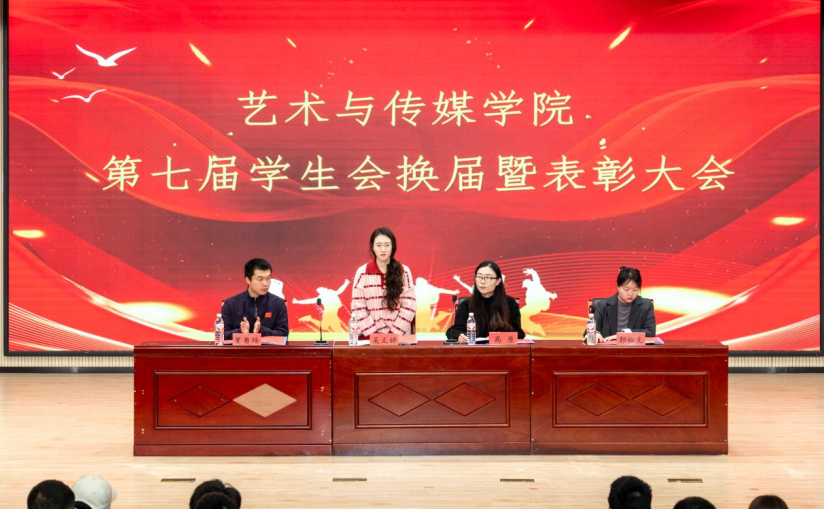 (通讯员 夏奥炜 韩金玲)为保障学生会工作连续性与创新性,表彰上届成员贡献,10月13日,艺术与传媒学院在大学生活动中心三楼报告厅举办第七届学生会换届暨表彰大会。艺术与传媒学院学生党支部书记高原、分团委书记吴文婷、22级辅导员郭裕文、25级辅导员夏奥炜出席本次大会,24、25级全体同学及新老学生会成员参会。