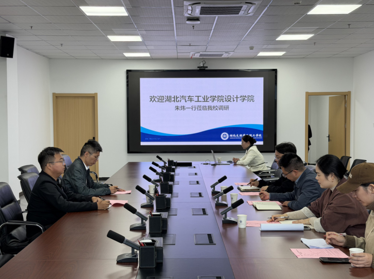 2025年10月15日,湖北汽车工业学院设计学院副院长朱炜率团队莅临湖北文理学院理工学院进行调研交流。会议在图书馆722会议室举行,湖北文理学院理工学院教学科研部副部长秦晓磊、艺术与传媒学院院长曹树进、艺术与传媒学院书记陈美霖,以及相关专业负责人共同出席了本次会议。
