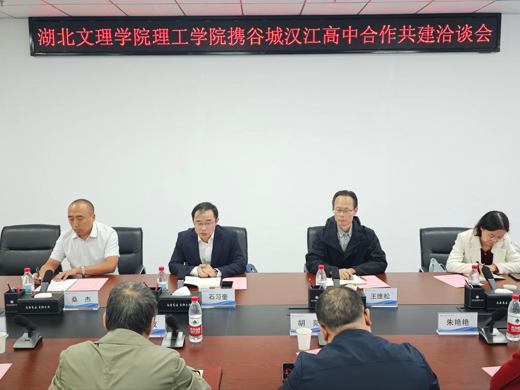 10月11日上午,我校与谷城汉江高中合作共建洽谈会在图书馆722会议室举行。会议由招生就业部部长胡阳主持,副校长汪波、教学科研部部长刘铁、发展规划部部长王寅龙、试点专业学院党政负责人及专业课教师,与汉江高中党支部书记石习奎、校长王维松一行共同出席了会议,双方就深化校校合作、共育优秀人才进行了深入交流,并展望了国际化联合培养的新路径。